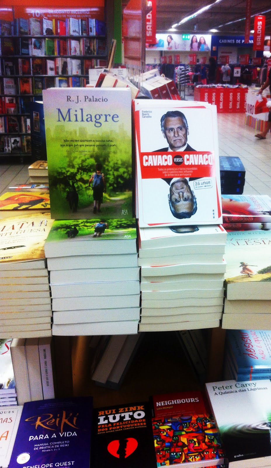 Após um pequeno passeio por Lisboa, entre os dias de ontem e hoje, posso assegurar aos meus leitores que a obra "Cavaco Versus Cavaco" está bem distribuída e exposta com destaque. Assim, para além da Fnac do Chiado, onde teve lugar o lançamento na passada sexta-feira, podem, por exemplo, entre outros locais, encontrar o livro na... Bertrand das Amoreiras...